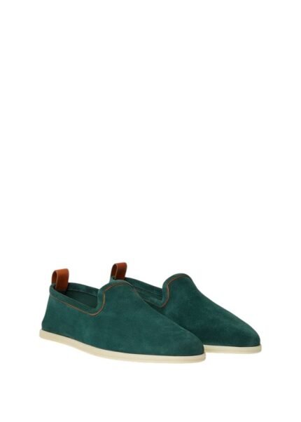 Loro Piana Summer Charms Walk Loafer Suede Ribbon Green