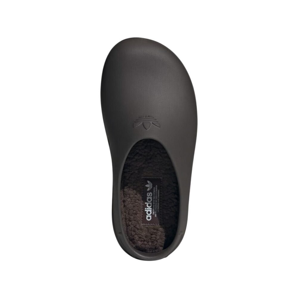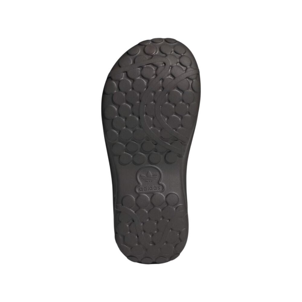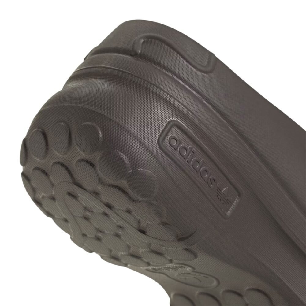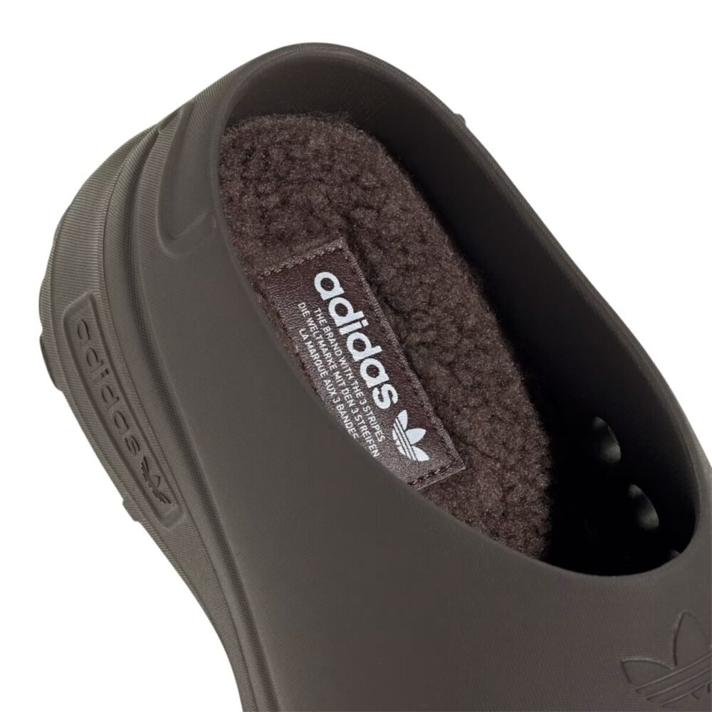 These mules are constructed of adiFOM, which is composed partially of sugarcane and partially of recycled materials. The upper features deco-embossed squiggles at the heel, an embossed trefoil on the toe box, and embossed Adidas branding on the lateral midsole. This platform sandal has a heel height of about 2.25 inches and a platform height of about 1.5 inches. The foam footbed features a removable textile insole for an additional layer of comfort. The outsole is lugged with circles to provide a grippy, easy ride with every step.