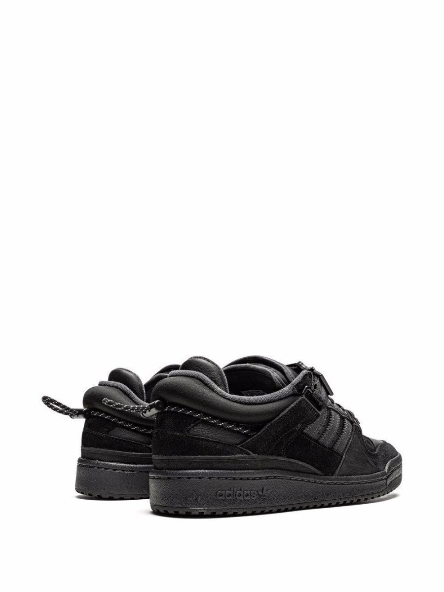The adidas Forum Low Bad Bunny Back To School features a triple black leather and suede upper atop a black sole. Like previous Bad Bunny Forum releases, this Forum is equipped with a double tongue and padded ankle strap.