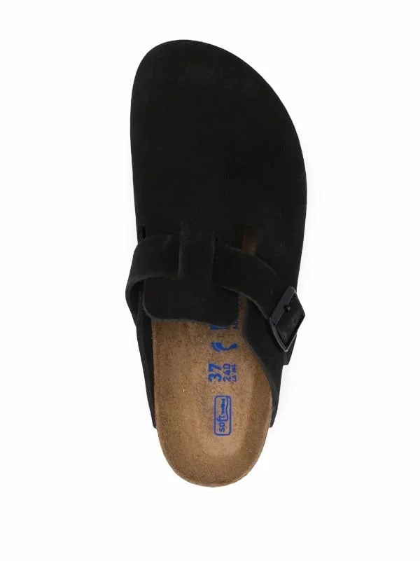 The Birkenstock Boston Soft Footbed Suede Black is a version of the recognizable Birkenstock Boston clog model that comes with an upper and footbed lining made of soft suede.