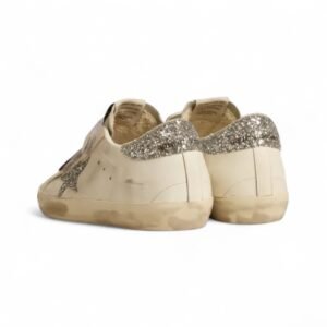 Golden Goose Old School ith silver glitter star and ice-gray suede tongue