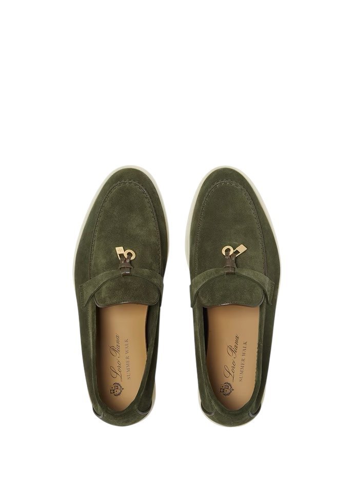 Loro Piana Summer Charms Walk Loafer Suede Ribbon Green