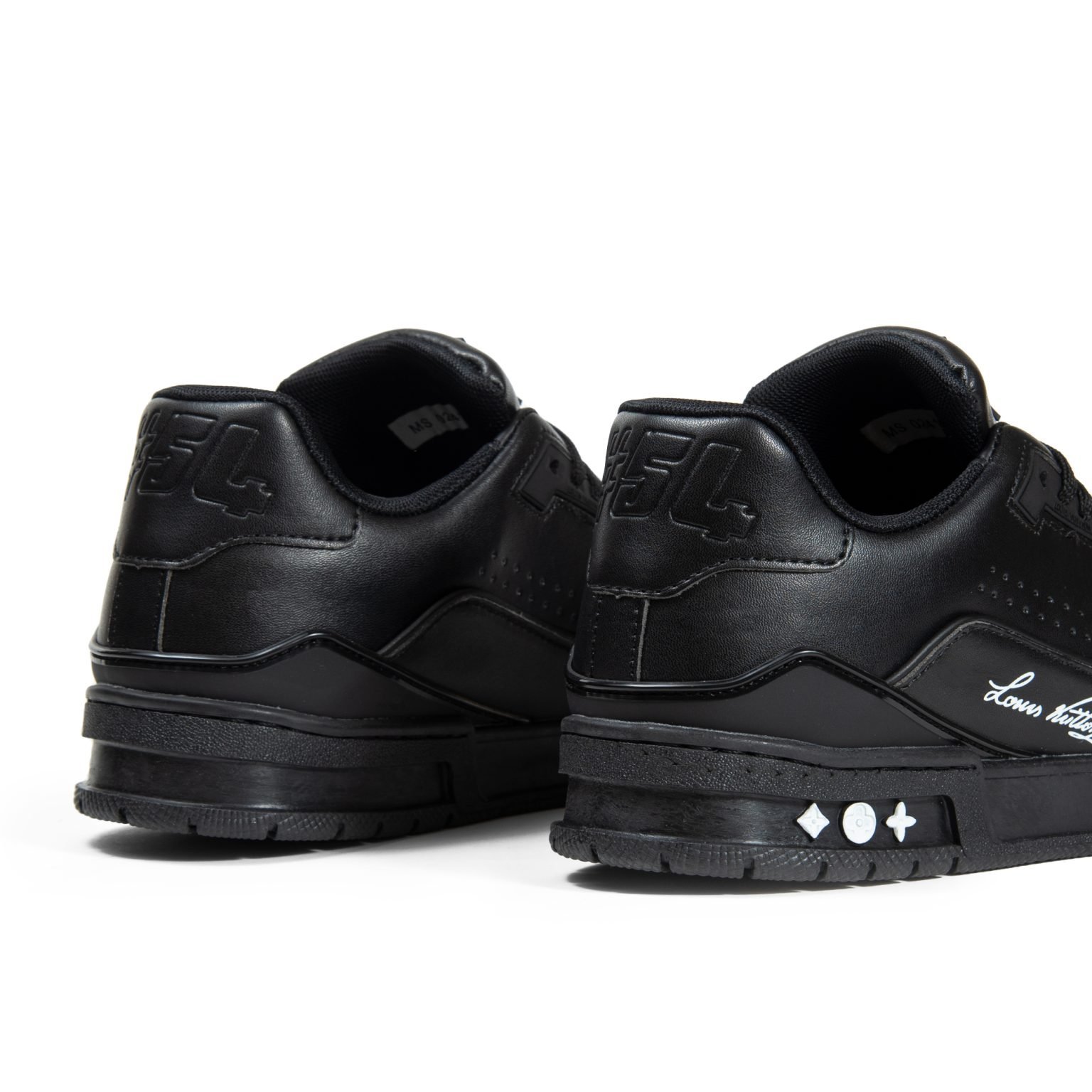 This winter version of the LV Trainer sneakers is made of supple calfskin with a warm wool lining. The model features a black rubber sole that matches the upper, and is complemented by the LV