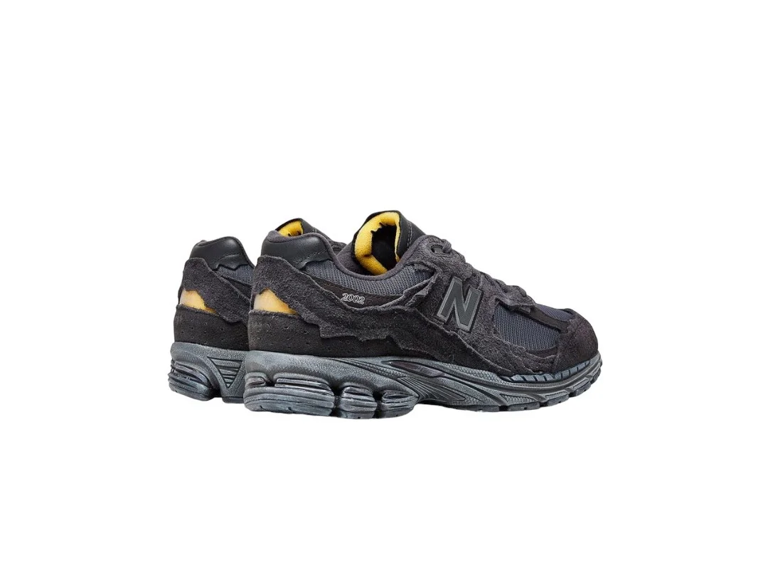 The New Balance 2002R Protection Pack Phantom features a charcoal mesh upper with monotone jagged suede overlays and unfinished edges. From there, a black Nrgy midsole and matching outsole add the finishing touches. I