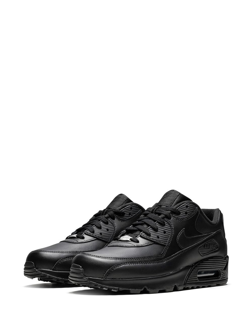 Supplied by a premier sneaker marketplace dealing with unworn, already sold out, in demand rarities. Each product is rigorously inspected by experienced experts guaranteeing authenticity. Get some air. With these black leather Air Max 90 sneakers from Nike, you can hop skip or jump your way through the day. Lace up and head out. Featuring a round toe, a flat rubber sole, a lace fastening, a branded insole and a signature Nike swoosh.